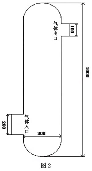 如圖2所示,穩(wěn)流罐包括兩端開口且豎直設(shè)置的圓柱形罐體,其兩端開口部分別焊接有半圓形罩體,罐體上靠近**和靠近底端的位置分別導(dǎo)通設(shè)置有氣體出口和氣體入口,氣體出口和氣體入口的開口方向完全相反,氣體出口和氣體入口的軸線相互平行且分別與圓柱形罐體的中軸線相交: