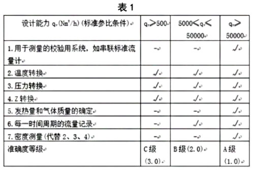 天然氣是一種不可再生的清潔資源,在世界能源結(jié)構(gòu)中占有非常重要的地位。天然氣測量系統(tǒng)出現(xiàn)的目的,就是維護天然氣貿(mào)易雙方的合法權(quán)益,使得計量結(jié)果是公正合理的歐洲對這方面的要求zui早,我國根據(jù)本國國情的需要,在此基礎(chǔ)上,制定了一些基本標準,主要有以下幾個方面:(1)防止燃爆,天然氣屬于易燃氣體,對于天然氣的檢定和校準裝置安裝時注意布局合理,符合設計要求。(2)計量精度符合要求,不同情況下,天然氣所需要的計量精度不同,針對用戶類型不同選擇zui為經(jīng)濟合理的計量和檢定裝置。(3)影響因素不同,天然氣成分不同,會導致管道中氣體的密度、壓縮因子的變化,這些因素的改變,會影響計量精度,為防止這些情況的出現(xiàn),應該選擇條件穩(wěn)定時,在進行計量。(4)天然氣的等級不同時,其計量系統(tǒng)的儀表配置也不一樣,可以見表1。