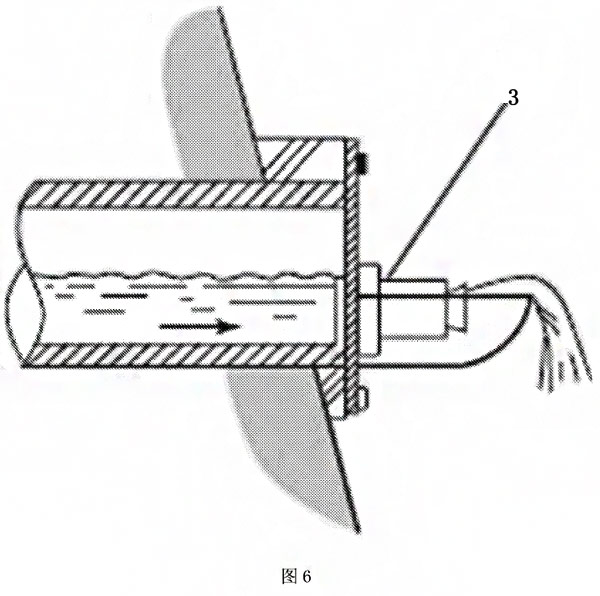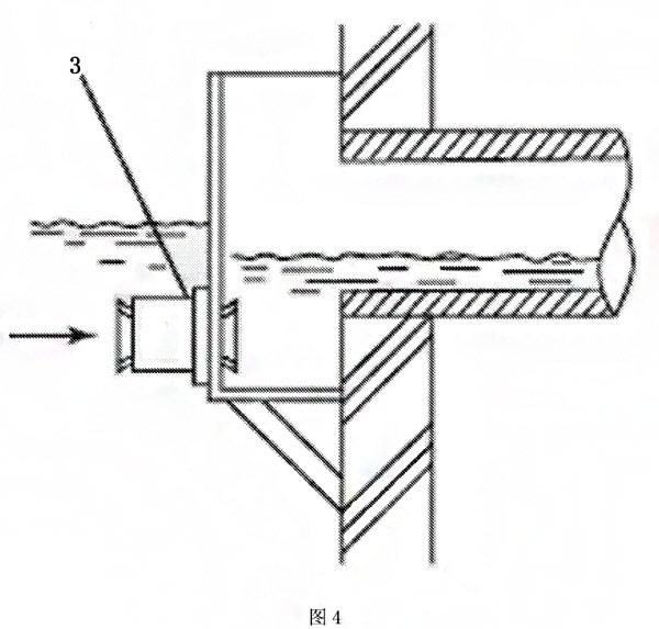 圖2中,潛水型電磁流量傳感器3為彎管型,進(jìn)行明渠流量的測(cè)量時(shí),將彎管型電磁流量傳感器3安裝在如圖8所示的位置,其它均同實(shí)施例1