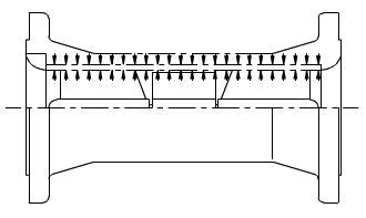 流體壓力的變化會導(dǎo)致相關(guān)液體的體積因壓縮影響發(fā)生改變。由于在檢定時與操作時流體壓力的改變,傳統(tǒng)型渦輪流量計的集合特性會被改變,這樣就會造成測量的不準(zhǔn)確。螺旋式渦輪流量計采用雙容器設(shè)計,從而可以使任何流體壓力變化的影響降為零。實(shí)際上,測量段的壓力與內(nèi)外表面的壓力是相同的,因此這一測量段不受流體壓力的影響而改變。