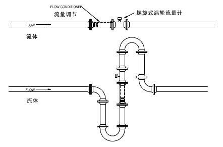 螺旋式渦輪流量計在標(biāo)定時水平安裝。當(dāng)應(yīng)用時需要以其它形式安裝時,如裝車架是垂直的,流量計也可以在標(biāo)定時垂直安裝。從我們的經(jīng)驗(yàn)看,當(dāng)流體自下而上流動時,安裝形式對流量計的性能的影響不大