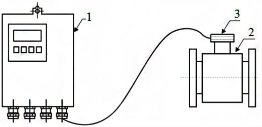 進(jìn)一步的,所述電磁流量傳感器包括導(dǎo)管,以及位于導(dǎo)管壁上的用于檢測流體溫度的溫度傳感器和用于檢測流體流動所產(chǎn)生電動勢的電極,在電極的外側(cè)設(shè)置有一圈磁軛,在磁軛的兩側(cè)分別設(shè)置有用來產(chǎn)生垂直于流體流動方向磁場的勵磁線圈,在磁軛和勵磁線圈的外側(cè)設(shè)置有起保護(hù)作用的外殼。所述接線盒和外殼一體設(shè)置,接線盒為密封結(jié)構(gòu),接線盒的線纜出口處采用水下堵漏膠密封。所述微處理器采用16位嵌入式超微功耗處理器。微處理器上還連接有實時時鐘模塊。