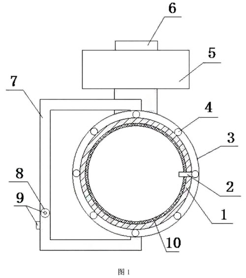 圖中:1、測量導管:2、信號電極:3、保護外殼:4、勵磁線圈:5、信號轉(zhuǎn)換器;6、智能處理器;7、導管;8、浮子;9、高度測量器;10、絕緣襯里。