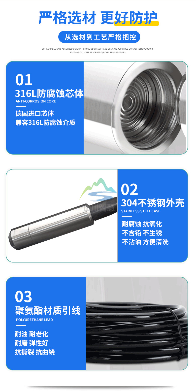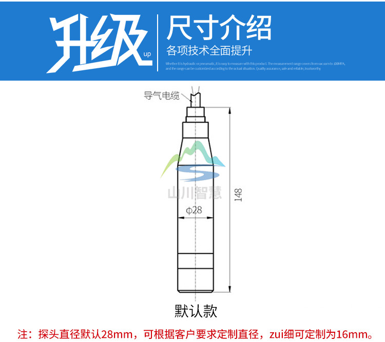 同時(shí),通過導(dǎo)氣不銹鋼將液體的壓力引入到傳感器的正壓腔,再將液面上的大氣壓 Po 與傳感器的負(fù)壓腔相連,以抵消傳感器背面的 Po ,使傳感器測得壓力為:ρ .g.H ,顯然 , 通過測取壓力 P ,可以得到液位深度。