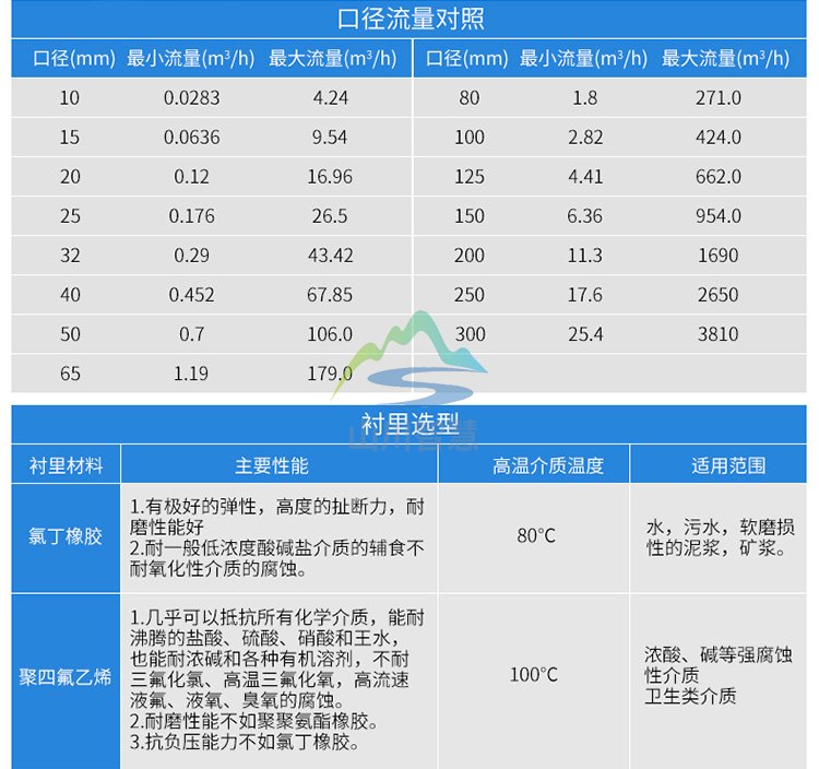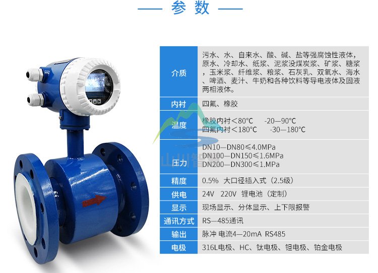 | 污水流量計相關參數表: |