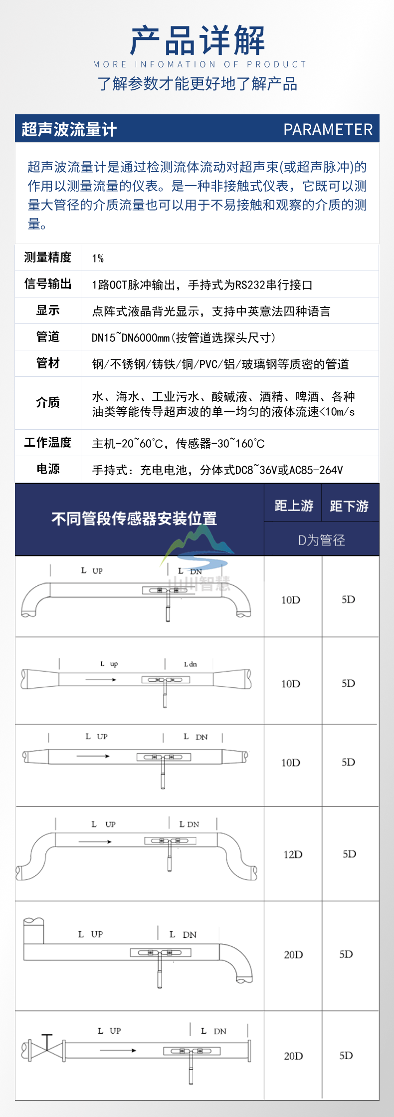 測量介質(zhì)飲用水、河水、海水、地下水、冷卻水、高溫水、污水、潤滑油、柴油、燃油、化工液體、其他均質(zhì)流體