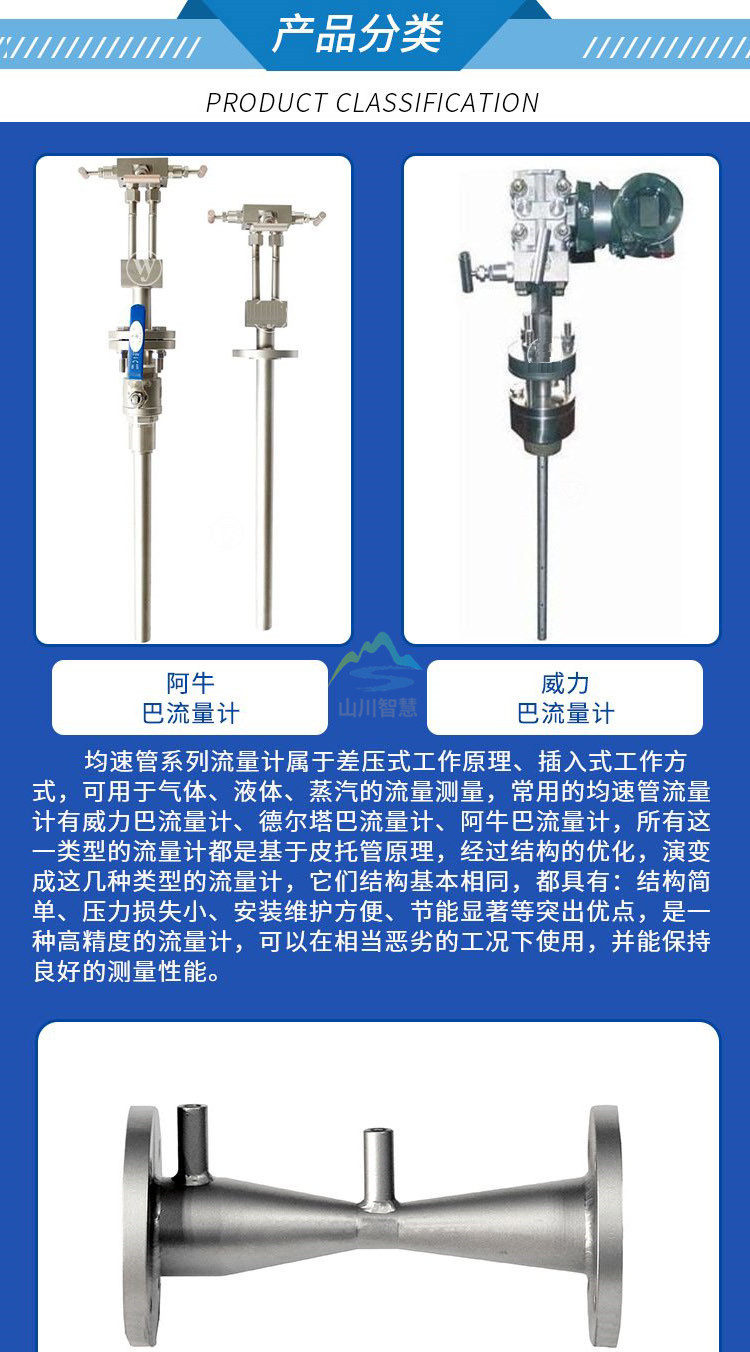 阿牛巴流量計以其安裝簡便、壓損小、強度高、不受磨損影響、無泄漏等特點而成為替代孔板的理想產品。阿牛巴流量計可**用于工礦企業(yè)的高爐煤氣、壓縮空氣、蒸汽和其他液體、氣體的流量測量。