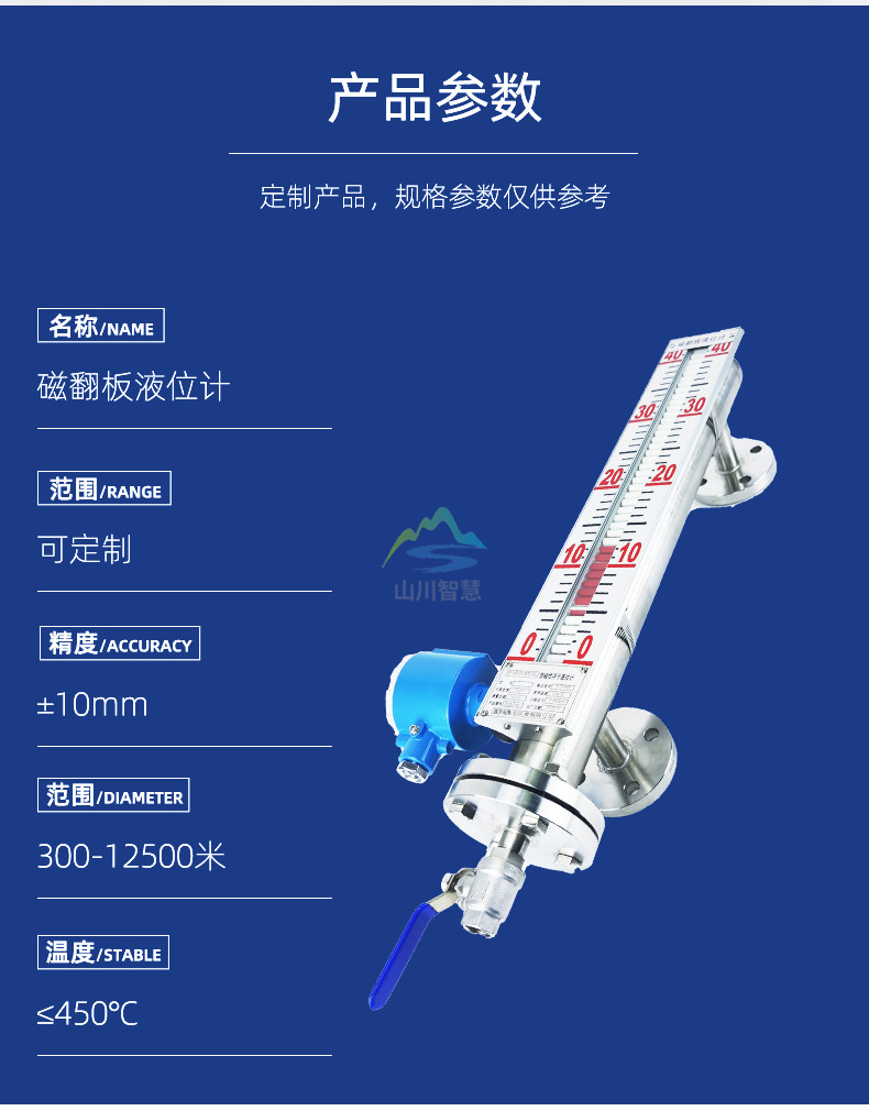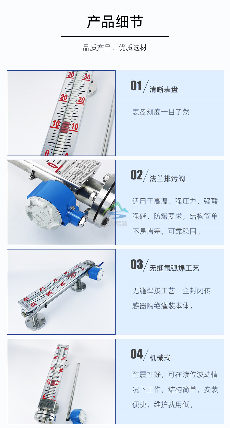 1、以浮子為測量元件、磁鋼驅動翻板顯示,無需能源。