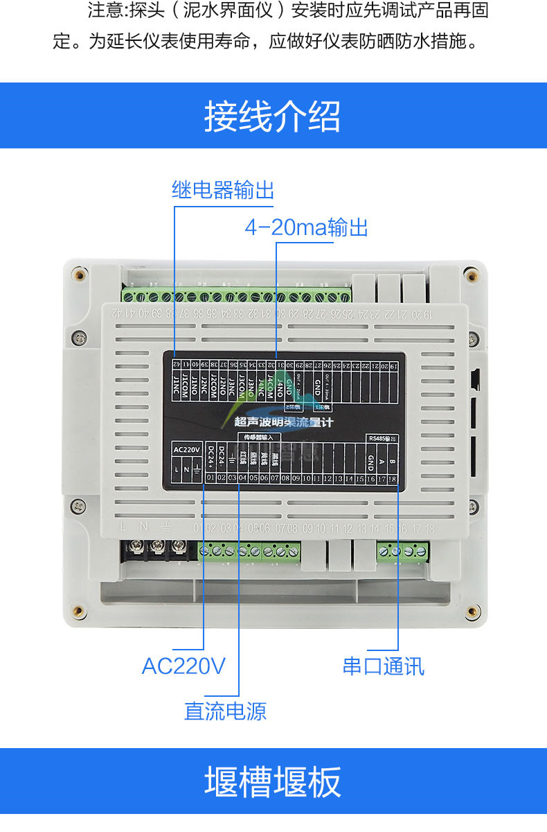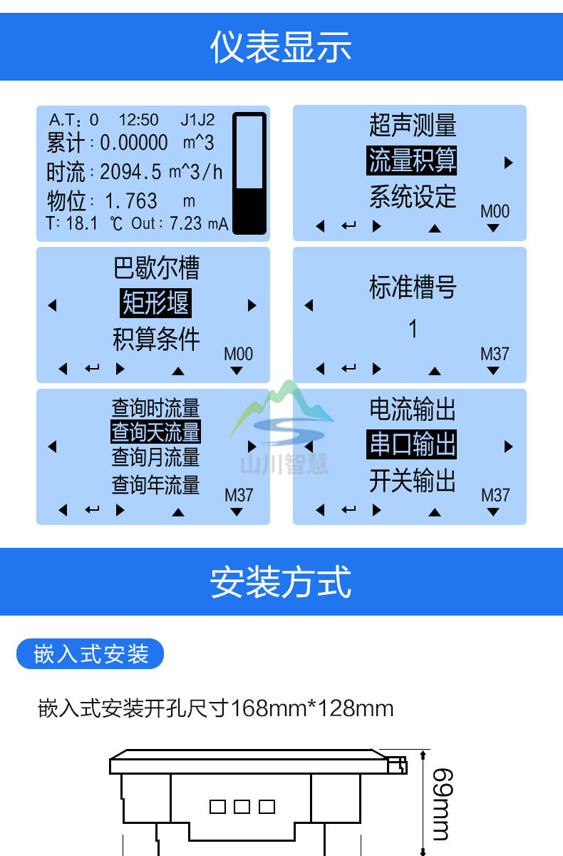 SC-LSBMQ 超聲波明渠流量計(jì)直接測(cè)量的物理量是液位。用于明渠測(cè)流量時(shí),在明渠上安裝量水堰槽。量水堰槽把明渠內(nèi)流量的大小轉(zhuǎn)成液位明渠流量計(jì)的高低。