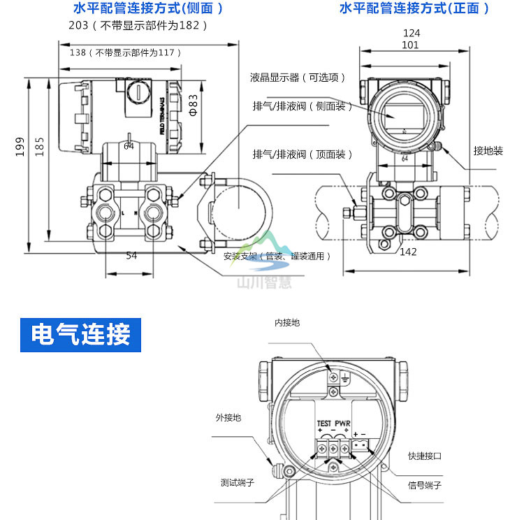 5、測量蒸汽或其他高溫介質(zhì)時,應(yīng)使用散熱管,使變送器和管道連在一起,并使用管道上的壓力傳至變壓器。當(dāng)被測介質(zhì)為水蒸氣時,散熱管中要注入適量的水,以防過熱蒸汽直接與變送器接觸,損壞傳感器;