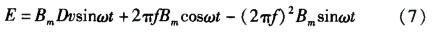 在正弦波勵(lì)磁方式下,假定勵(lì)磁電流為I=Imsinωt,其中ω=2πf,流量計(jì)的勵(lì)磁磁場強(qiáng)度B和勵(lì)磁電流相位相同,所以得到公式為B= Bmsinωt。將此公式帶入式(3)和式(4)可得