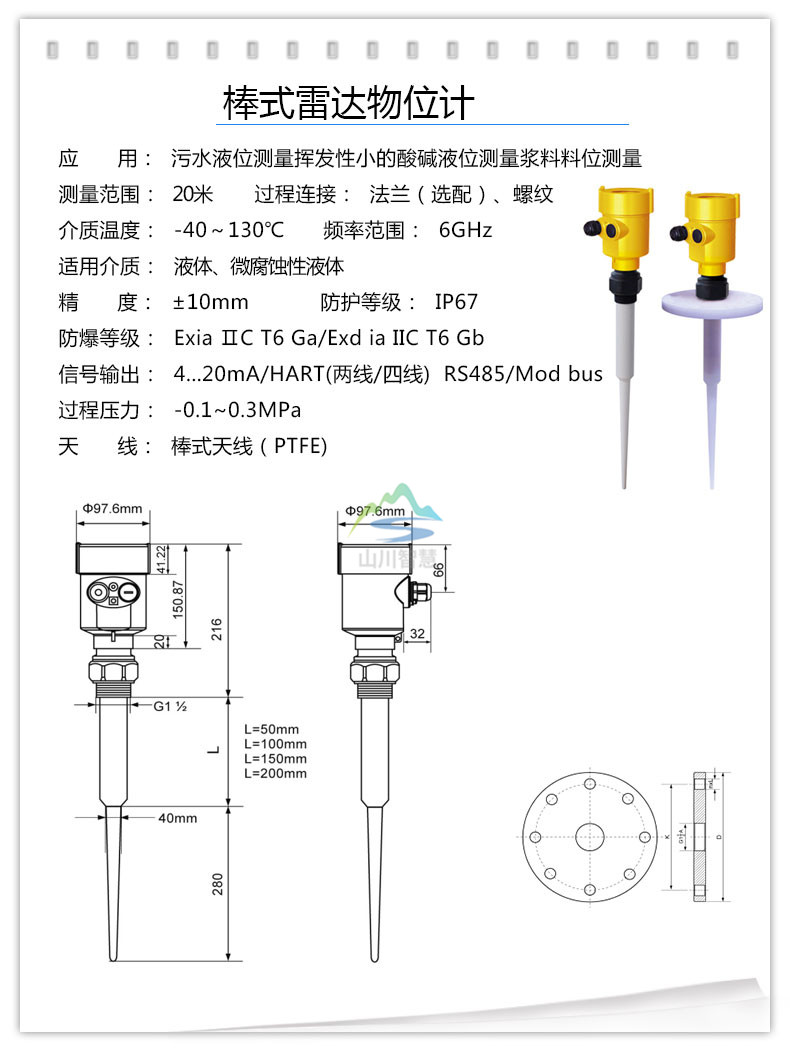 測量范圍:桿式6米/纜式20米